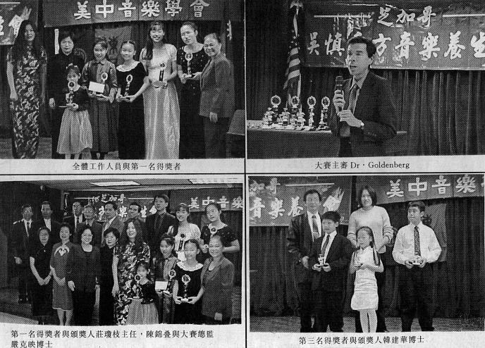 為使大賽辦的盡善盡美﹐芝加哥吳慎東方音樂養生會的理事﹑董事們包括勞潔梅﹑容音寧﹑勞潔霞﹑楊少華﹑雷韻意﹑劉大維﹑涂建榮﹑杜國光﹑顧文霞﹑唐志淼夫婦等教授博士們皆熱心公益的﹐分別擔任報到﹑計時﹑結算﹑攝影及獎狀騰寫等工作。經過為時五小時餘的比賽﹐成績揭曉﹐由大賽總監音樂博士嚴克映教授宣讀﹐現場掀起一陣陣歡呼聲﹐將全場 氣氛帶到最高潮﹐繼而分別由東吳大學校友會會長韓建華博士﹑北伊州華人協會會長陳錦疊﹑西北中文學校校長謝蓉﹑西北大學醫學院教授﹐現任芝加哥吳慎東方音樂養生會理事顧文霞博士及杜國光博士及僑教中心莊瓊枝主任分別頒發獎牌及獎杯予得獎者﹐莊主任並且勉勵年輕華裔小音樂家們及肯定他們在音樂上的成就﹐最後希林中心主席勞潔梅女士及音樂養生會董事亦為美國健康生活報芝加哥分社負責人榮音寧先生頒發吳慎及奇爾加德音樂獎學金予大賽前三名﹐全場在歡呼聲及道賀聲中劃上了休止符。